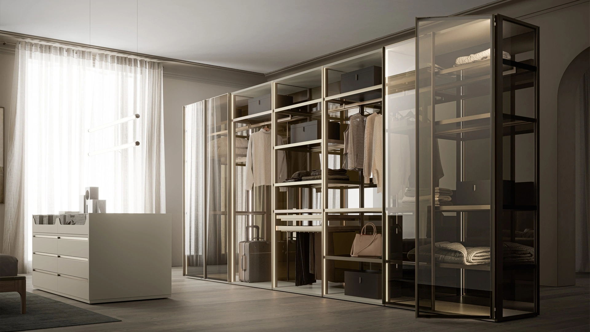 Cabina Armadio Luxury 01 di SantaLucia: compila il form, contattaci e dai vita alla stanza del relax come l'hai sempre sognata. Per completare alla perfezione il concept d'arredo, opta per le nostre proposte di Arredamento Casa dei migliori brand, letti, armadi e comò vari per eleganza, grandezza e finitura. Gli Armadi e le cabine armadio con ante battenti devono progettare la camera assicurandoti una perfetta ottimizzazione degli spazi e un'esclusiva ricerca estetica. Contattaci per informazioni e preventivi e potrai completare la zona notte che hai sempre voluto grazie ad una ricca gamma di mobili contenitori design come quest'armadiatura in vetro nella fotografia.