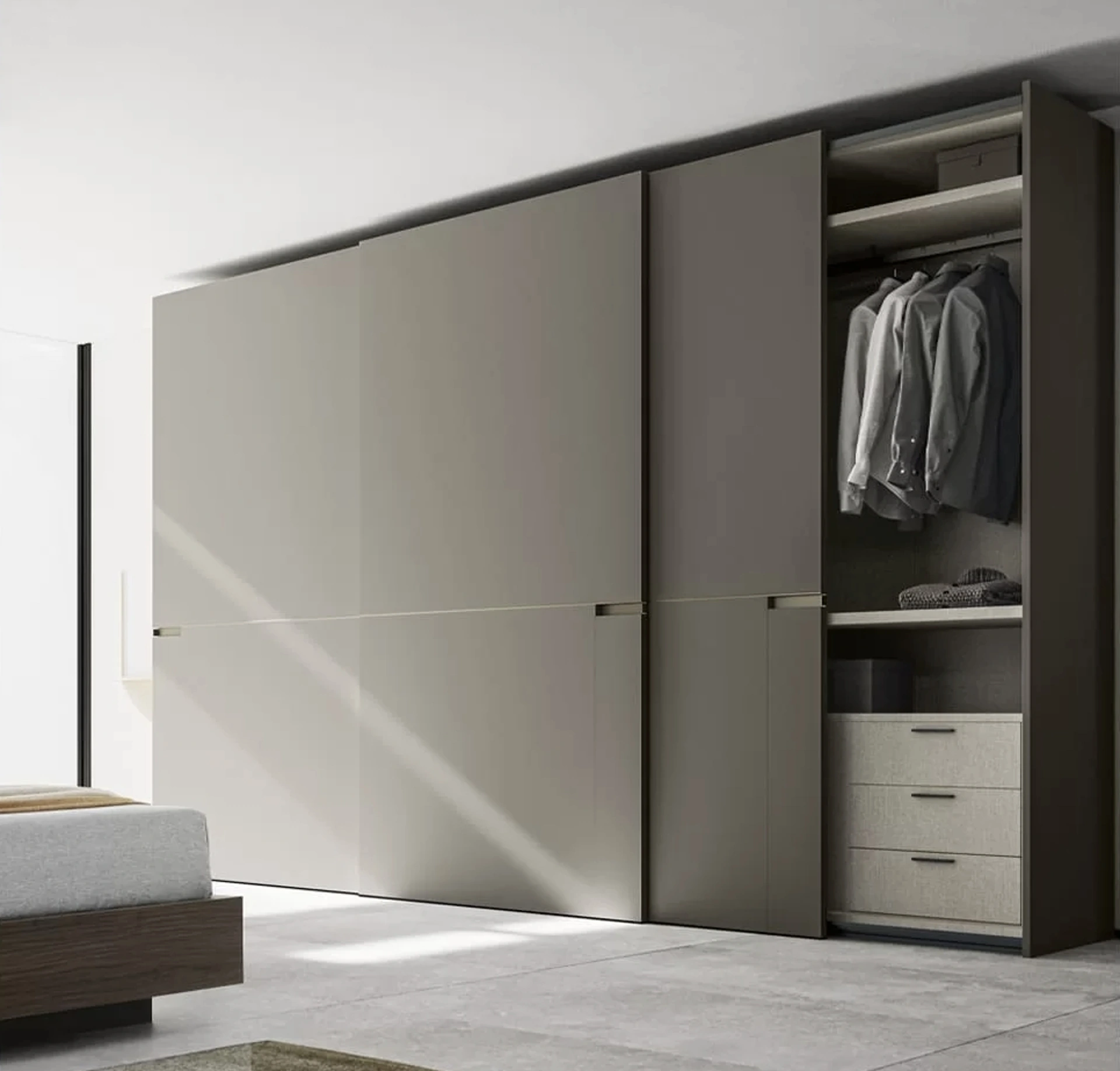 Per ultimare alla perfezione il concept d'arredo, prediligi le nostre proposte di Arredamento Casa dei migliori produttori, letti, armadi e comodini diversi per eleganza, dimensione e finitura. Gli Armadi e le cabine armadio con ante scorrevoli devono progettare la zona notte garantendoti una perfetta organizzazione degli spazi e un'esclusiva ricerca stilistica. Contattaci per info e preventivi e potrai ultimare la zona del riposo che hai sempre desiderato grazie ad una ampia varietà di contenitori moderni come quest'armadiatura in laccato opaco nella fotografia. Armadio Master Scorrevole di SantaLucia: compila il form, contattaci e dai vita alla stanza del relax come l'hai sempre sognata.