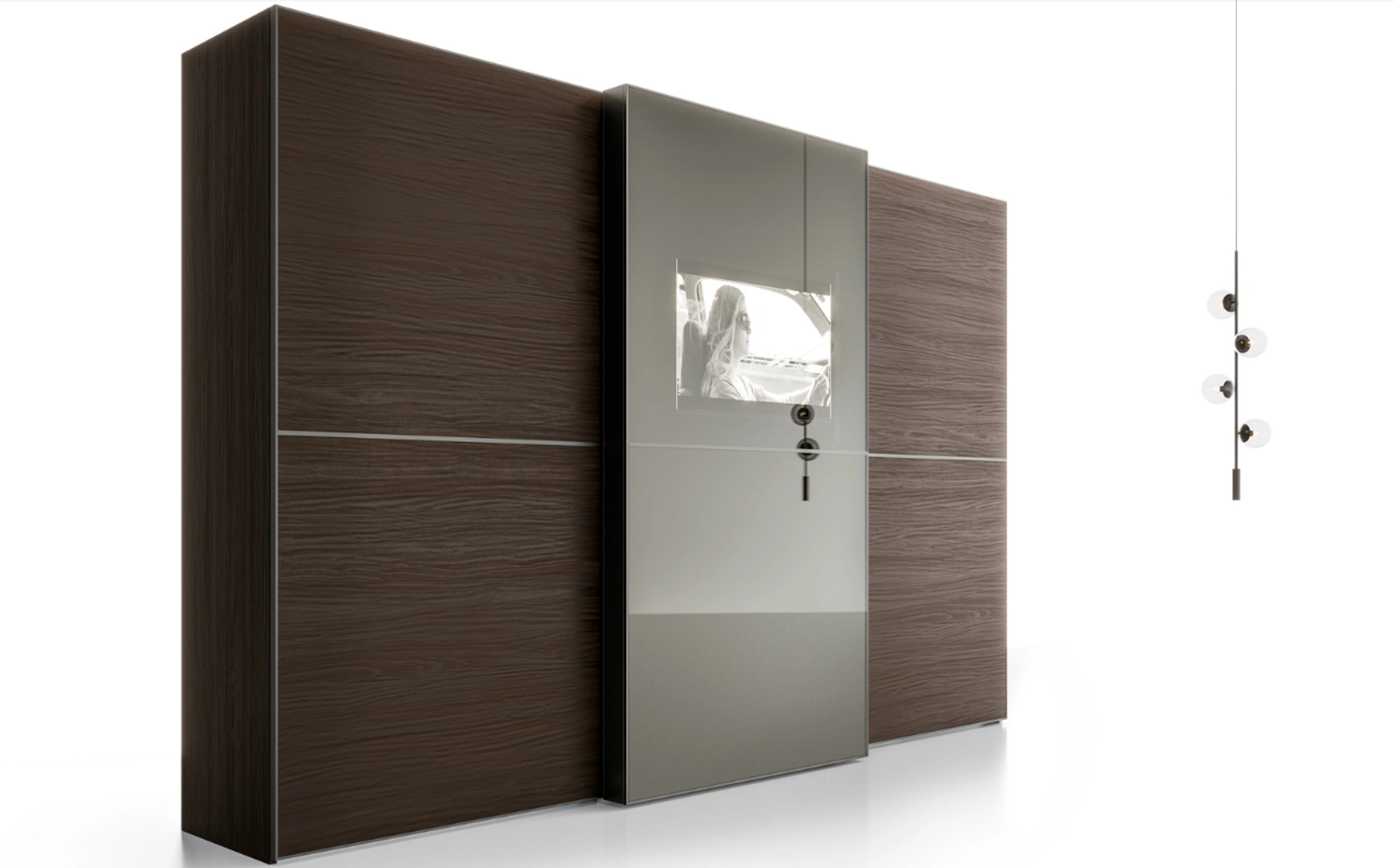 Una ricca varietà di arredi in melaminico come quest'armadiatura con ante scorrevoli in foto. Se desideri ricreare una stanza bella e di grande qualità, compila il form o visitaci per ottenere infromazioni, complementi e accessori nell'ambito dell'Arredamento Casa. Durata e comfort sono gli ingredienti che, unitamente a un elevato contenuto estetico, connotano tutti gli Armadi a muro moderni della marca SantaLucia. Armadio con schermo TV integrato Screen di SantaLucia in melaminico: in un ricco catalogo di mobili e oggetti accessori, questo modello ti farà completare la tua zona del riposo come l'avevi immaginata. Armadio con schermo TV integrato Screen di SantaLucia: se cerchi arredatori professionisti per preventivi e progetti, realizza con noi la casa che hai sempre sognato.