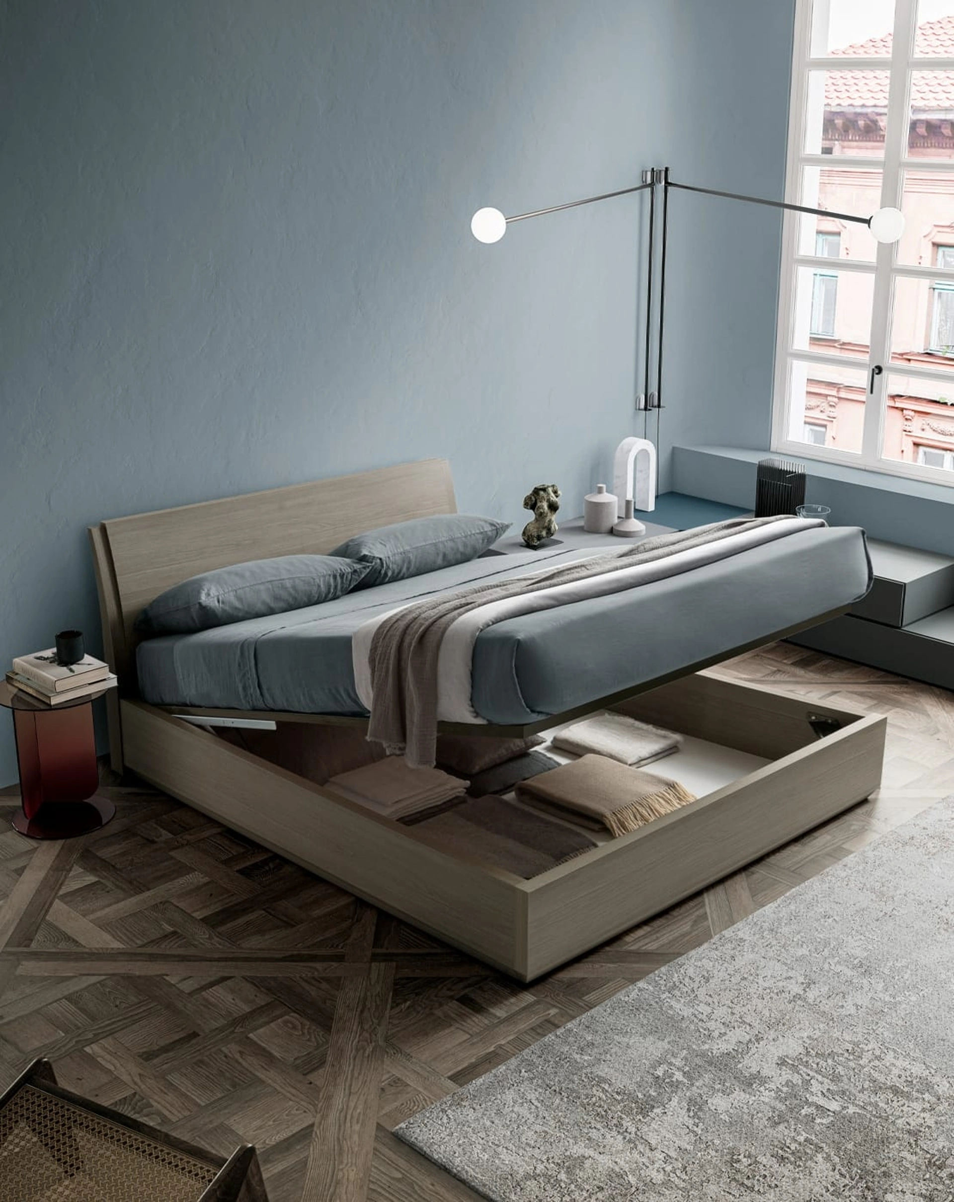Durante l'acquisto della giusta tipologia di letto, valuta con cura le sue misure, i materiali, la forma e il suo stile rispetto ai restanti pezzi d'arredo. Il Letto Tod con box contenitore di SantaLucia ricrea uno spazio intimo e confortevole in ogni camera, garantendoti il relax totale e un design unico. Scegli cromie e finiture e realizza il tuo concept d’arredo nella camera, progettandola proprio come l'avevi immaginata. I Letti matrimoniali con contenitore della marca, leader nella realizzazione di Arredamento Casa per la camera da letto, sono progettati per essere abbinati a mobili e complementi di ogni genere, come armadi e comò, abat jour e piantane.