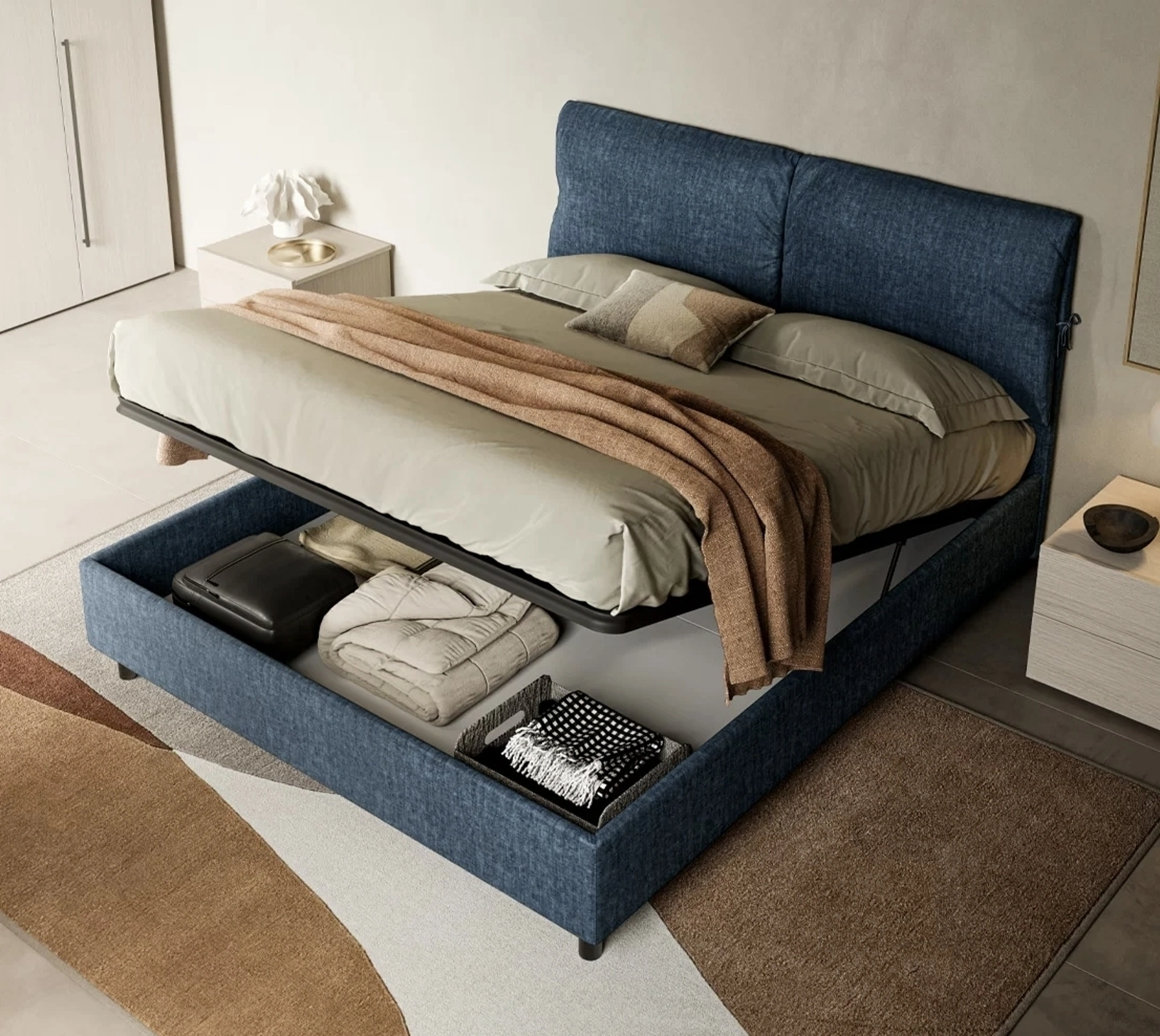 Se vuoi una soluzione in tessuto, il modello presente in foto è connotato da materiali pregiati e linee decise, che invitano a goderti un riposo tranquillo e ristoratore. Durante l'acquisto della giusta tipologia di letto, valuta attentamente le sue dimensioni, i materiali, la forma e il suo stile rispetto ai restanti pezzi d'arredo. Il Letto con contenitore Taku di SantaLucia ricrea uno spazio accogliente e confortevole in ogni camera da letto, assicurandoti il sonno più profondo e un design unico. I Letti matrimoniali con contenitore dell'azienda, leader nella produzione di Arredamento Casa per la zona notte, sono progettati per essere abbinati a mobili e complementi di ogni genere, come armadi e comò, abat jour e piantane.