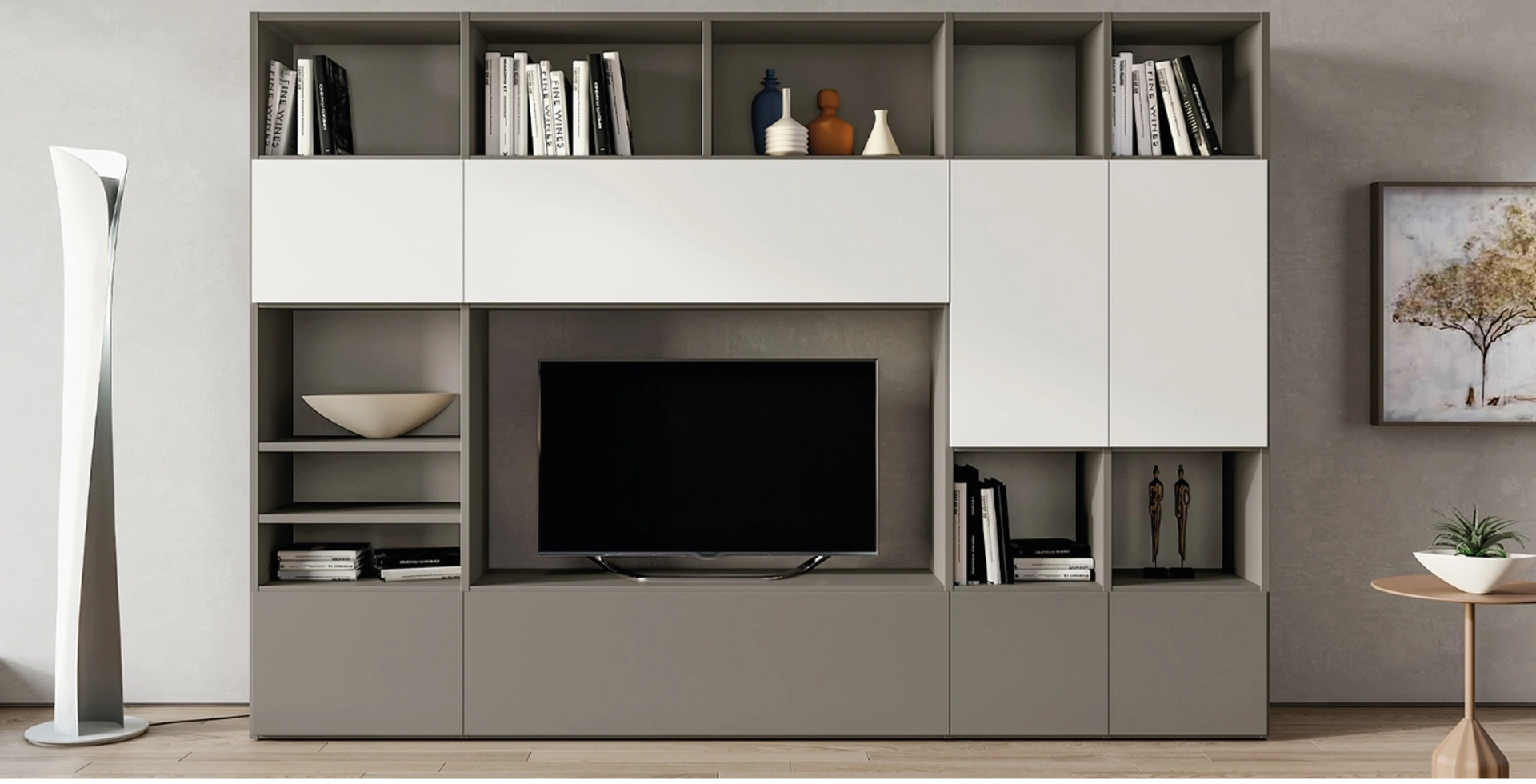 I mobili per il soggiorno, come le Librerie a muro, permettono di mantenere lo spazio in ordine contenendo libri, giornali e oggettistica assortita. Se desideri unmobile soggiorno in laccato opaco, che sia robusta, funzionale, bella e elegante, spulciare le nostre soluzioni moderne ti aiuterà a trovare il modello che fa per te. Organizzare il living è semplice: scegli la migliore tipologia di libreria con la quale arredare l'ambiente e valorizzare il look dello spazio. La Libreria Pratico Composizione PTG312 di SantaLucia qui visibile ben si inserisce in uno spazio dinamico e operativo nonché bello da vedere.
