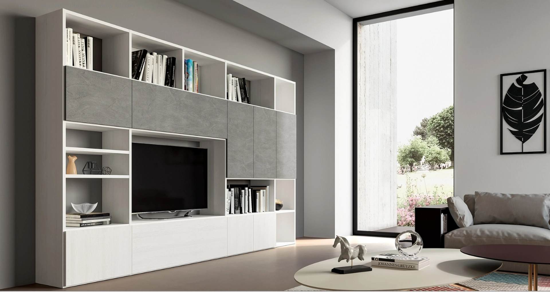 Mantenere il living in ordine non è il suo unico compito: con questa libreria potrai realizzare il concept d'arredo che hai sempre voluto ottimizzando ogni spazio. Scopri presso i migliori punti vendita di mobili le più esclusive Librerie componibili, tra cui anche quelle moderne in materico ideali per impreziosire soggiorni di ogni tipo. Il modello visibile in foto è la Libreria Pratico Composizione PTG314 di SantaLucia, uno dei mobili soggiorno realizzabili su misura del noto e rinomato brand di Arredamento Casa. In negozio ti attendono i nostri professionisti, pronti a illustrarti mobili e oggetti accessori belli e pratici per la tua abitazione.