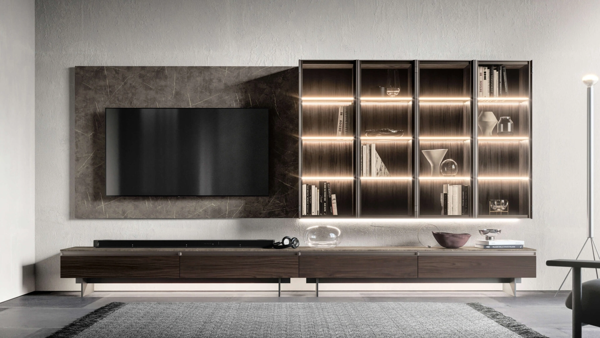 Per informazioni e preventivi sulla Parete Attrezzata Homy di SantaLucia nella fotografia contattaci! Il modello proposto è realizzato in melaminico, ma grazie ad un'ampia gamma di finiture, tonalità e forme, potrà adattarsi a stili di ogni tipo. Questa parete attrezzata è una delle soluzioni della firma e ti permetterà di progettare il living seguendo le più personali esigenze abitative. Attraverso un gioco dinamico di accostamenti fra componenti a giorno o vani chiusi, le Pareti Attrezzate moderne arredano il living sfruttando bene ogni spazio.