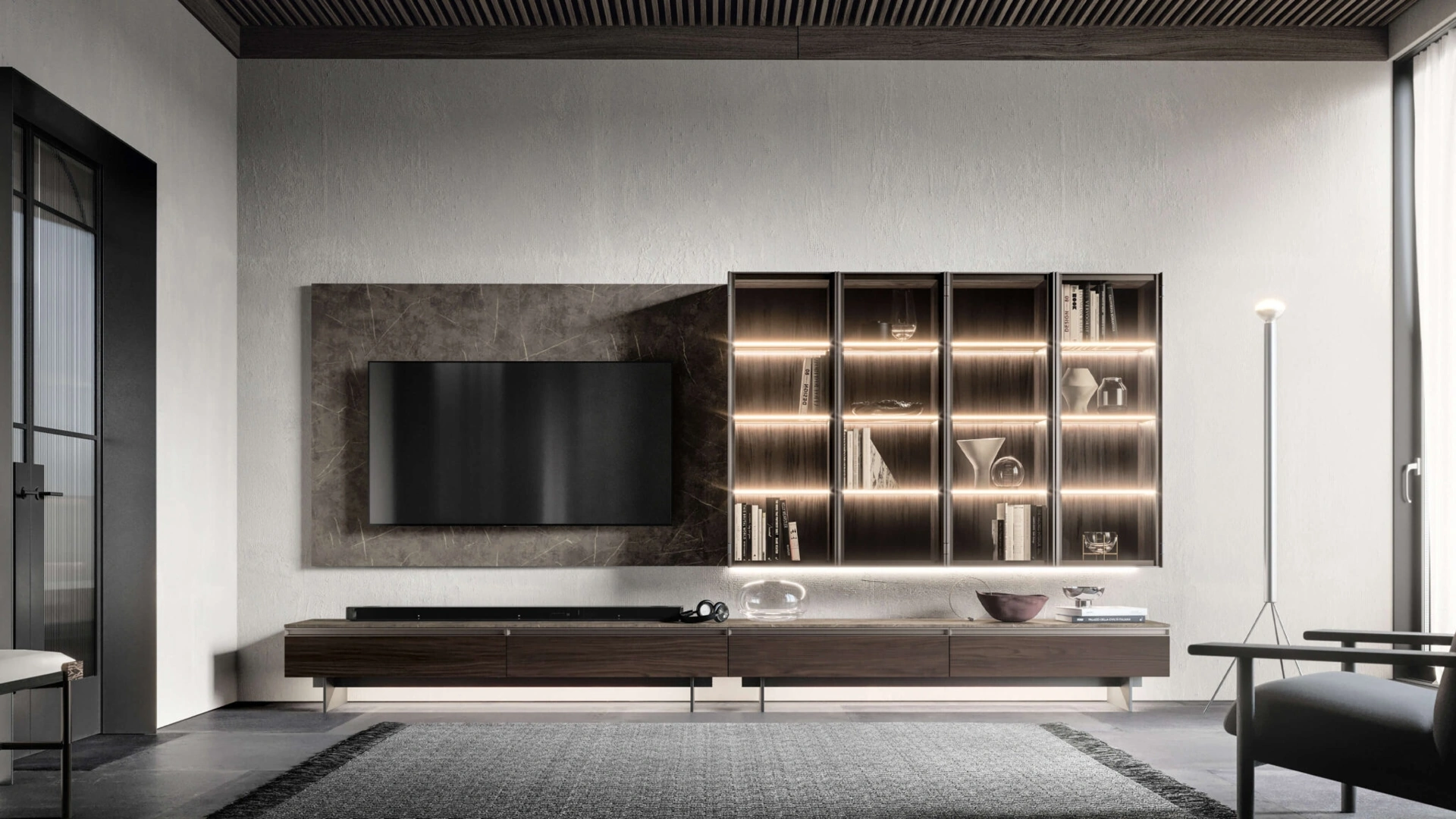 Attraverso un gioco dinamico di accostamenti fra componenti a giorno o vani chiusi, le Pareti Attrezzate moderne arredano il living ottimizzando ogni spazio. Per informazioni e preventivi sulla Parete Attrezzata Location 21 di SantaLucia in foto contattaci! Il modello proposto è realizzato in melaminico, ma grazie ad un'ampia gamma di texture, tonalità e forme, potrà adattarsi a stili di ogni tipo. Le Pareti Attrezzate hanno assunto un posto fondamentale nella zona giorno delle nostre case: sono mobili plurifunzionali e salvaspazio sempre realizzabili su misura per te.