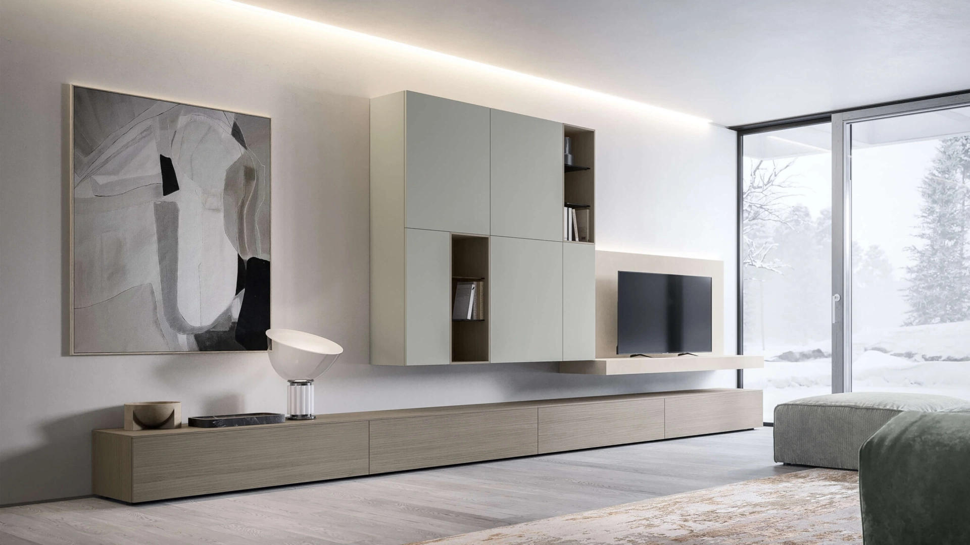 I mobili soggiorno in melaminico dalle linee moderne come il modello nell'immagine sono veramente eclettici e capaci di progettare il soggiorno ottimizzando ogni angolo. Lasciati affascinare da una ricca gamma di arredi per la zona giorno e potrai trovare la parete attrezzata che fa al caso tuo. SantaLucia propone innovativi modelli di mobili soggiorno, diversi per stile e forme, texture e componenti: scopri nel nostro showroom l'Arredamento Casa dei migliori brand. Poiché il soggiorno deve essere uno spazio funzionale e di grande valore estetico, sono necessari alcuni arredi belli e funzionali come le Pareti Attrezzate.