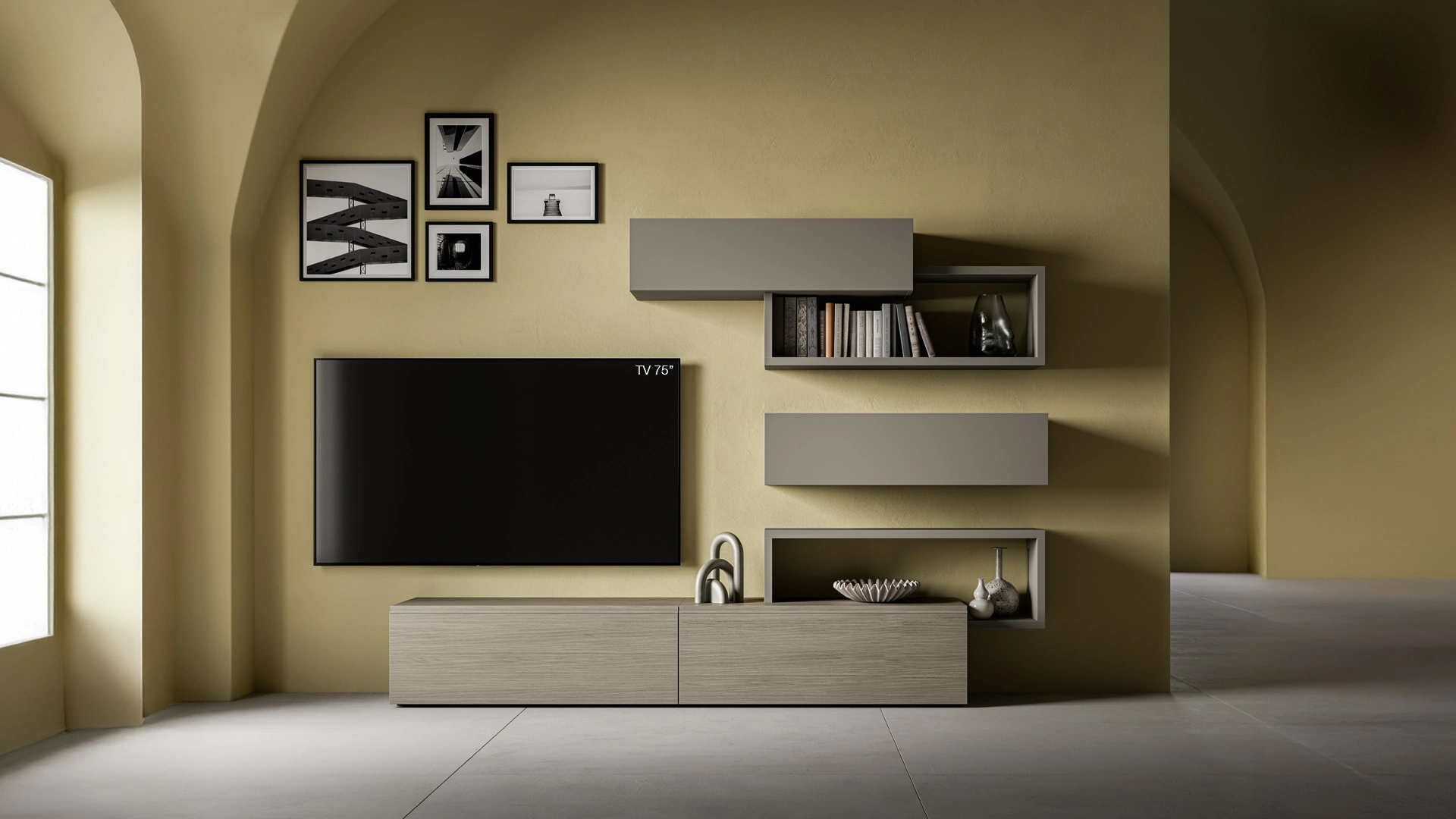 Poiché il soggiorno deve essere uno spazio funzionale e bello da vedere, sono necessari alcuni mobili belli e pratici come le Pareti Attrezzate. I mobili soggiorno in melaminico dalle linee moderne come il modello nell'immagine sono davvero versatili e capaci di ammobiliare il soggiorno valorizzando ogni angolo. Lasciati stuzzicare da un ricco catalogo di mobili per la zona giorno e troverai la parete attrezzata che fa al caso tuo. La Parete Attrezzata Pratico PTG407 di SantaLucia nell'immagine è una delle più originali soluzioni d’arredo in commercio: massima componibilità e le varie opportunità di progettazione la rendono bella e di grande qualità.