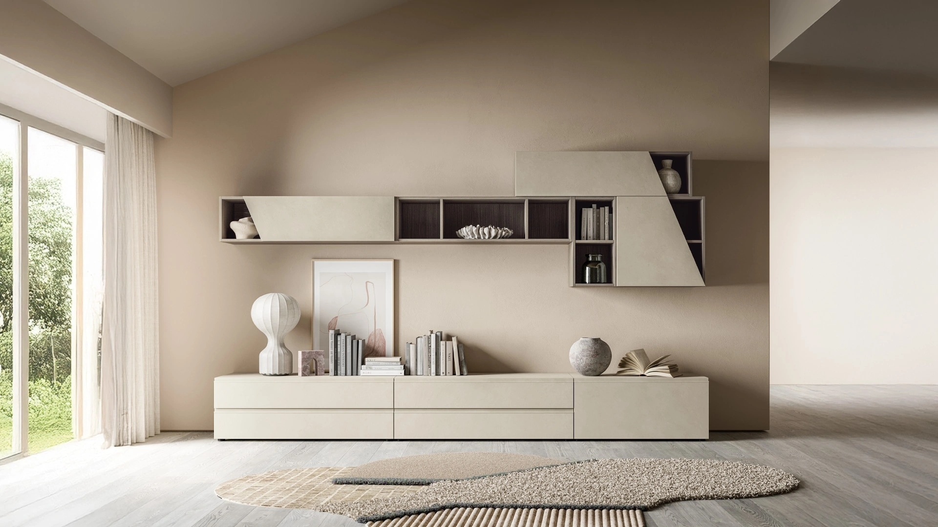 SantaLucia propone inediti modelli di mobili soggiorno, diversi per stile e forme, texture e accessori: scopri nel nostro punto vendita l'Arredamento Casa delle migliori marche. Poiché il living deve essere uno spazio ben organizzato e bello a vedersi, sono molto utili alcuni arredi belli e pratici come le Pareti Attrezzate. I mobili soggiorno in melaminico dalle linee moderne come il modello in foto sono veramente versatili e capaci di arredare la zona giorno sfruttando bene ogni angolo. Lasciati stuzzicare da un ricco catalogo di arredi per la zona giorno e potrai trovare la parete attrezzata che fa per te.