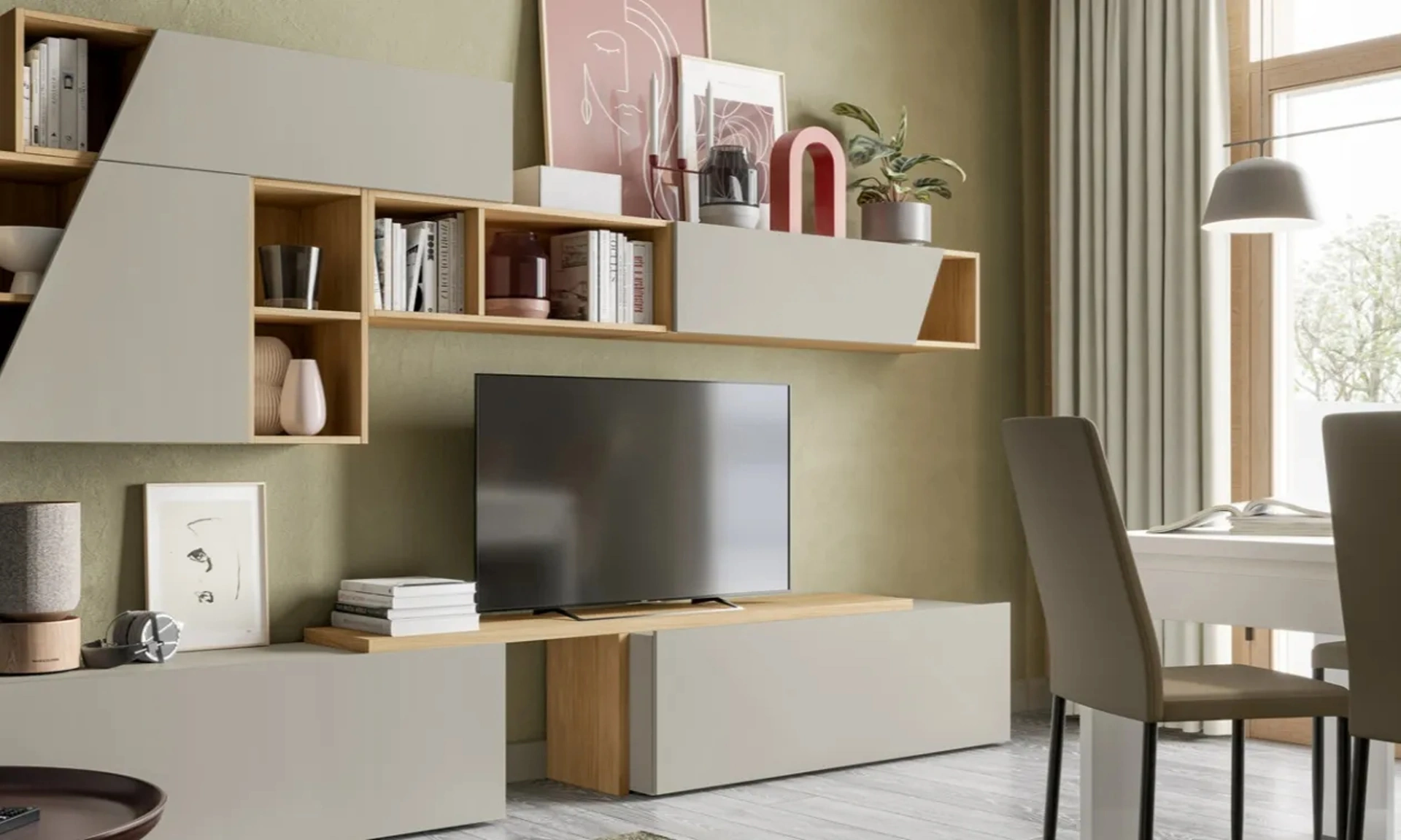 Scopri la nostra linea di arredi per il living del brand SantaLucia e potrai arredare la tua casa con un design unico e le doti contenitive di cui hai bisogno. Le Pareti Attrezzate moderne permettono di creare varie ambientazioni nel living, liberando spazio e sfruttando bene ogni angolo. La Parete Attrezzata Pratico PTG318 di SantaLucia diventa protagonista in stanze di ogni genere grazie ai suoi elementi modulari e alla possibilità di abbinare texture, materiali, cromie, conformazioni e tanto altro.